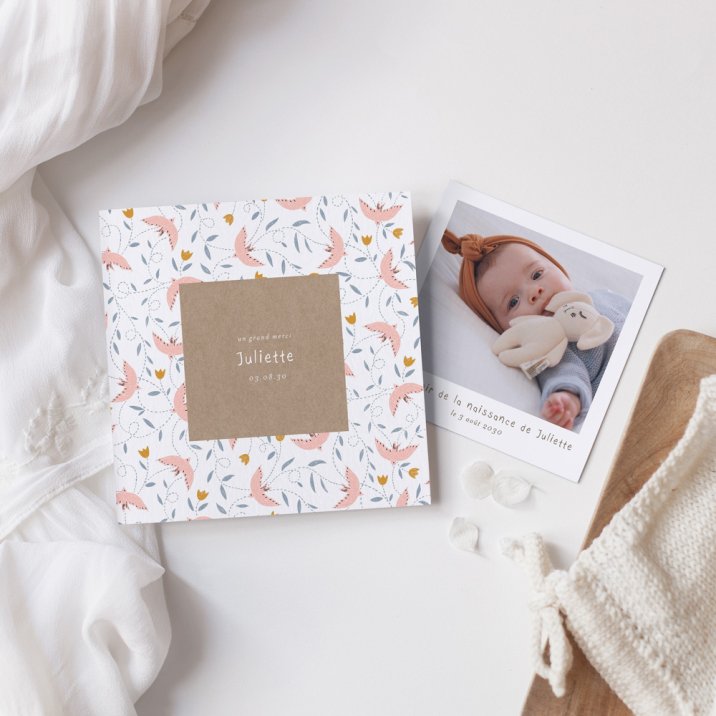 Remerciez les proches qui vous ont entouré et vous ont gâté d'attentions pour la naissance de bébé avec une jolie carte personnalisée.