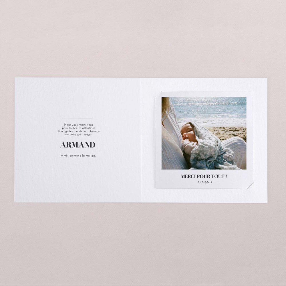 Cette carte de remerciements s'accompagne d'un cadeau glissé à l'intérieur : une photo de votre nouveau-né, inspirée du format polaroid (non magnétisé), qu'ils pourront conserver en souvenir, afficher selon leur inspiration, utiliser comme marque-page...