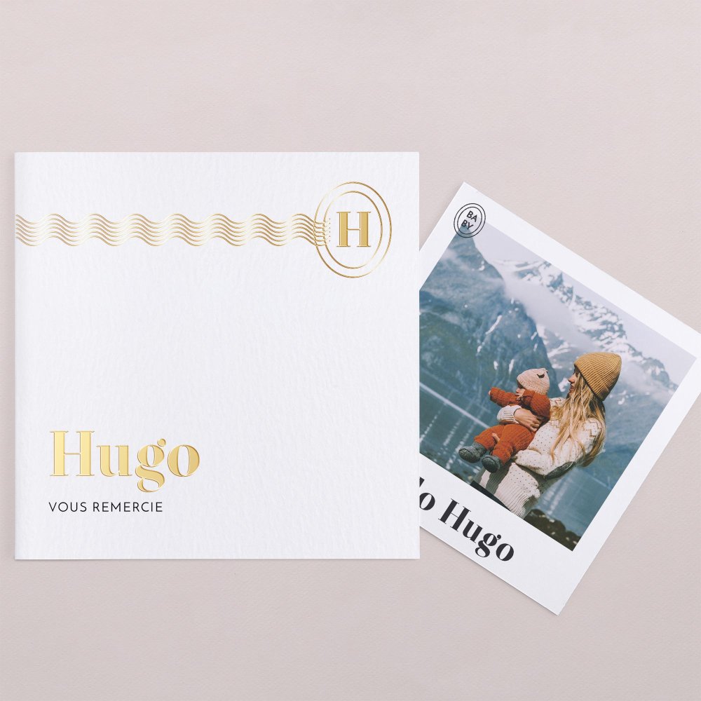 Cette carte de remerciements s'accompagne d'un cadeau glissé à l'intérieur : une photo de votre nouveau-né, inspirée du format polaroid (non magnétisé), qu'ils pourront conserver en souvenir, afficher selon leur inspiration, utiliser comme marque-page...