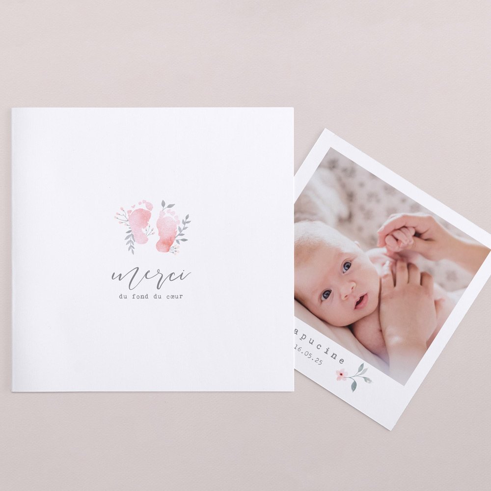 Cette carte de remerciements s'accompagne d'un cadeau glissé à l'intérieur : une photo de votre nouveau-né, inspirée du format polaroid (non magnétisé), qu'ils pourront conserver en souvenir, afficher selon leur inspiration, utiliser comme marque-page...