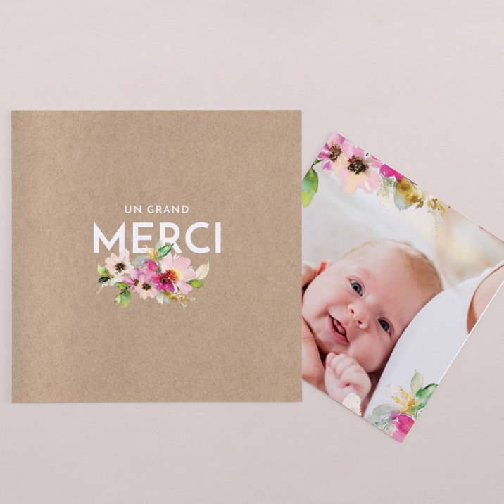 Remerciez les proches qui vous ont entouré et vous ont gâté d'attentions pour la naissance de bébé avec une jolie carte personnalisée.