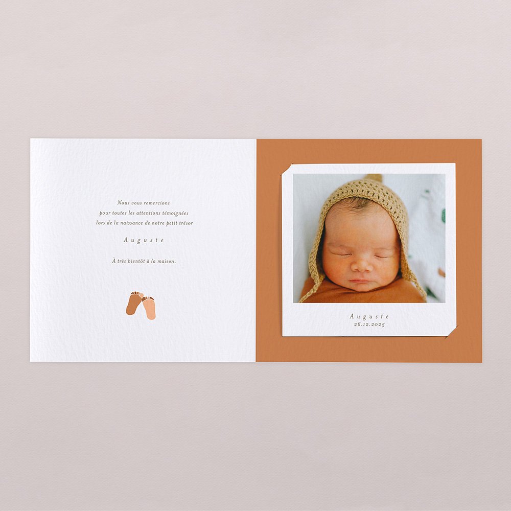 Cette carte de remerciements s'accompagne d'un cadeau glissé à l'intérieur : une photo de votre nouveau-né, inspirée du format polaroid (non magnétisé), qu'ils pourront conserver en souvenir, afficher selon leur inspiration, utiliser comme marque-page...