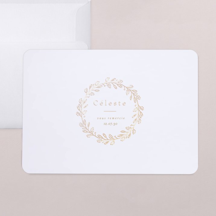 Carte de remerciements sobre, aux coins arrondis pour plus de douceur.