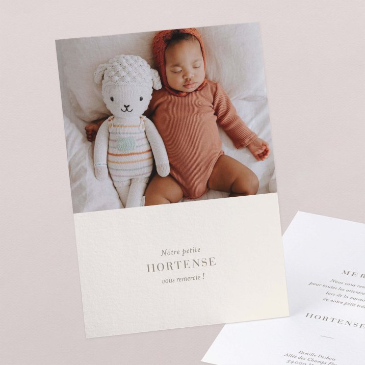 Carte de remerciements simple en recto-verso, à personnaliser d'un côté avec votre photo et de l'autre avec votre texte.