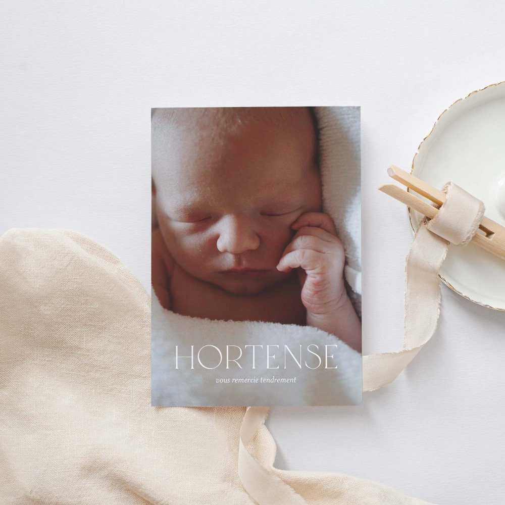 Carte de remerciements simple en recto-verso, à personnaliser d'un côté avec votre photo et de l'autre avec votre texte.