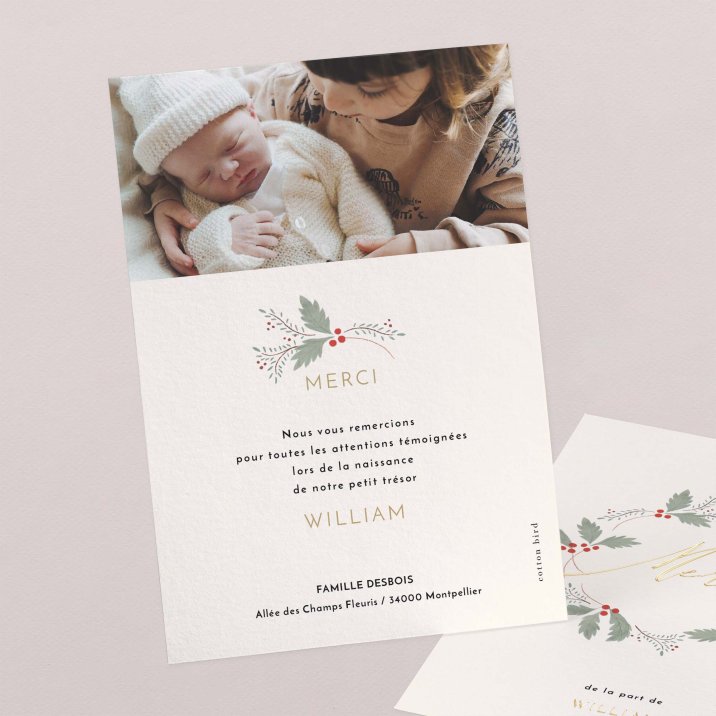 Carte de remerciements simple en recto-verso, à personnaliser d'un côté avec votre photo et de l'autre avec votre texte.