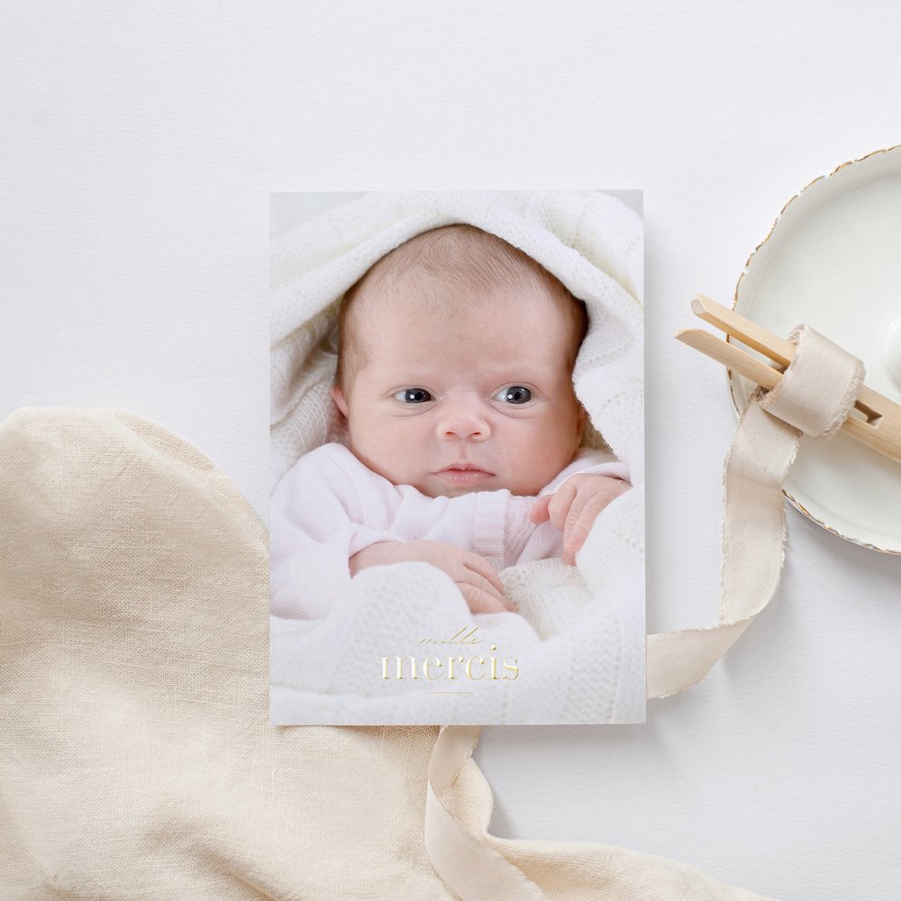 Carte de remerciements recto-verso, à personnaliser d'un côté avec votre photo et de l'autre avec votre texte.