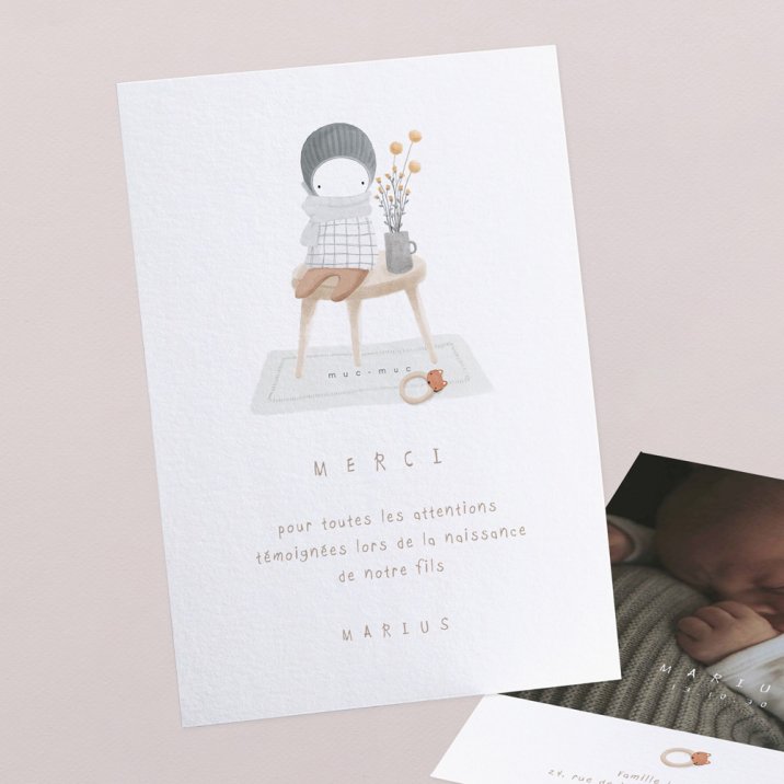Carte de remerciements recto-verso, à personnaliser d'un côté avec votre photo et de l'autre avec votre texte.
