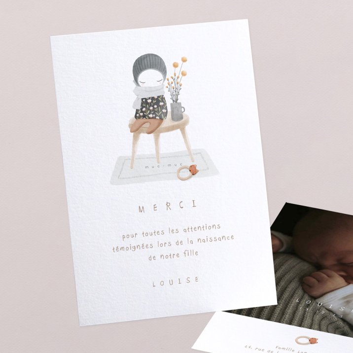 Carte de remerciements recto-verso, à personnaliser d'un côté avec votre photo et de l'autre avec votre texte.