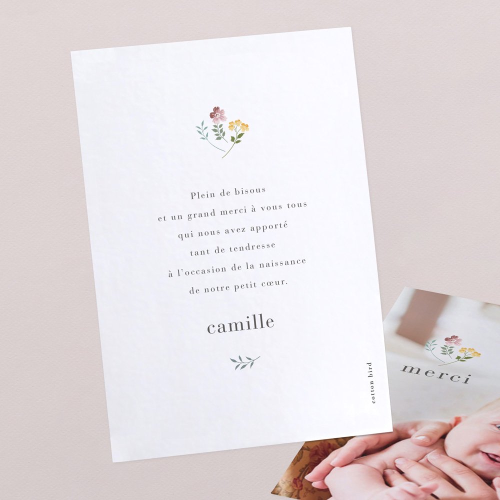 Carte de remerciements recto-verso, à personnaliser d'un côté avec votre photo et de l'autre avec votre texte.