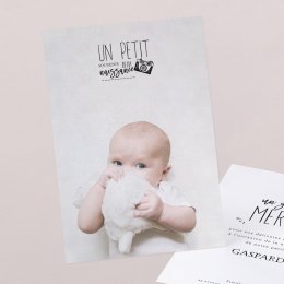 Carte de remerciements recto-verso, à personnaliser d'un côté avec votre photo et de l'autre avec votre texte.