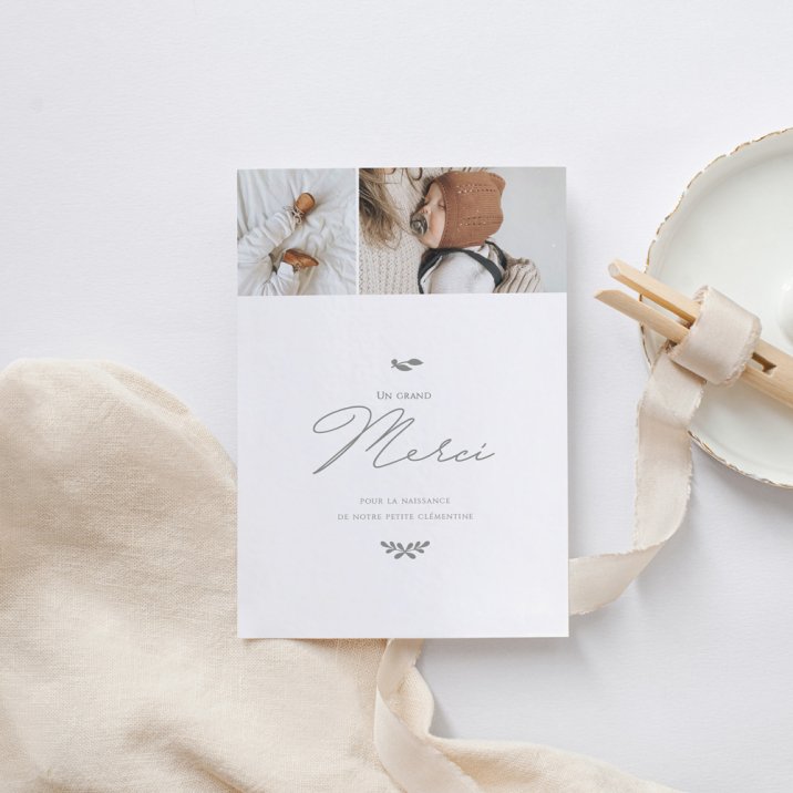 Carte de remerciements recto-verso, à personnaliser d'un côté avec votre photo et de l'autre avec votre texte.