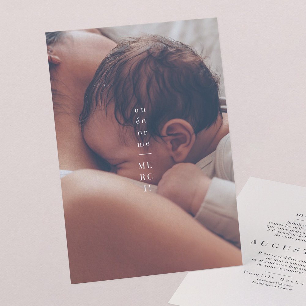 Carte de remerciements simple en recto-verso, à personnaliser d'un côté avec votre photo et de l'autre avec votre texte.