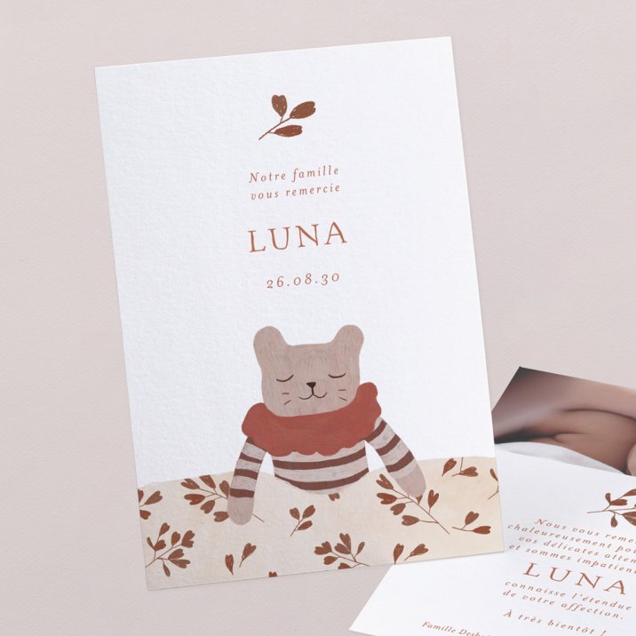 Carte de remerciements simple en recto-verso, à personnaliser d'un côté avec votre photo et de l'autre avec votre texte.