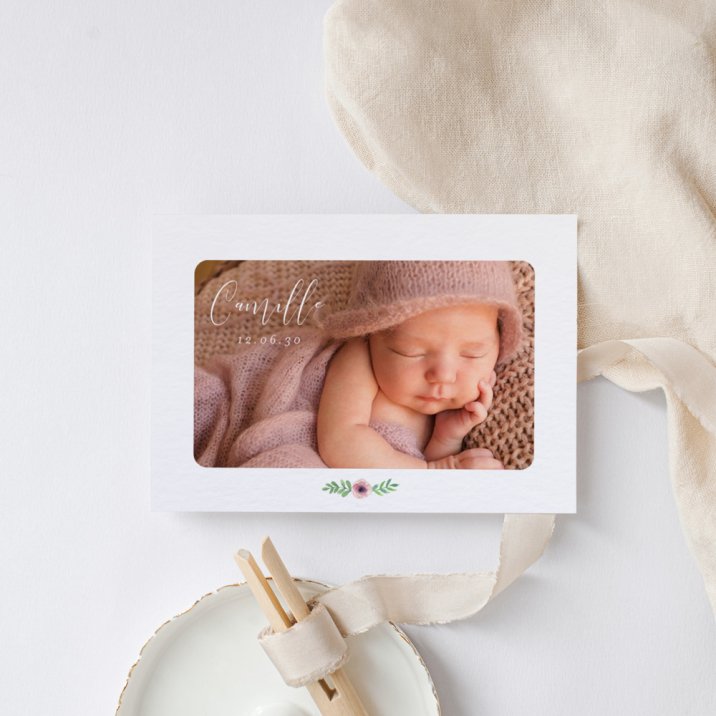 Carte de remerciements simple en recto-verso, à personnaliser d'un côté avec votre photo et de l'autre avec votre texte.