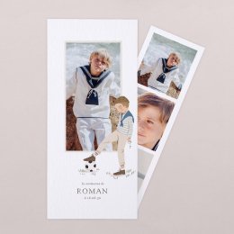 Ce faire-part se présente sous la forme d'une carte pliée par le milieu. À l'ouverture, son destinataire découvrira la jolie photo de votre enfant, accompagnée de votre texte personnalisé.