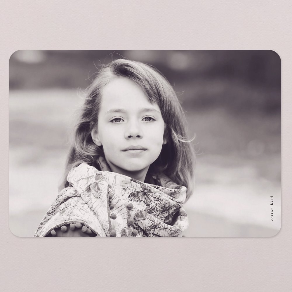 Ce faire-part se présente sous forme de carte paysage avec des coins arrondis pour plus de douceur.