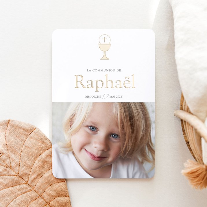 Ce faire-part présente un format portrait aux coins arrondis pour plus de douceur.