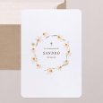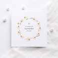 Une douce couronne de fleurs de jonquilles s'esquisse en jaune et vert sur le faire-part de communion Yellow spring. Ce faire-part de communion aux tons ensoleillés sera parfait pour annoncer une célébration au printemps ou en été.