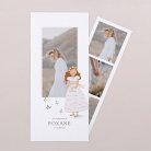 Ce faire-part se compose d'une carte pliée par le milieu et d'un photomaton, glissé à l'intérieur. Vos proches pourront utiliser le photomaton comme marque-page, l'afficher sur leur frigo, sur un panneau filaire ou en liège...