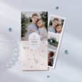 Ce faire-part se compose d'une carte pliée par le milieu et d'un photomaton, glissé à l'intérieur. Vos proches pourront utiliser le photomaton comme marque-page, l'afficher sur leur frigo, sur un panneau filaire ou en liège...