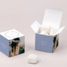 Pour enchanter vos invités, garnissez ce petit cube surprise de délicieuses dragées (disponibles en option), fabriquées artisanalement dans le sud de la France. Nous vous conseillons d’ajouter 20 dragées par boîte (50 g).