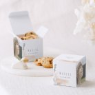 Pour enchanter vos invités, garnissez ce petit cube surprise de délicieuses dragées (disponibles en option), fabriquées artisanalement dans le sud de la France. Nous vous conseillons d’ajouter 20 dragées par boîte (50 g).