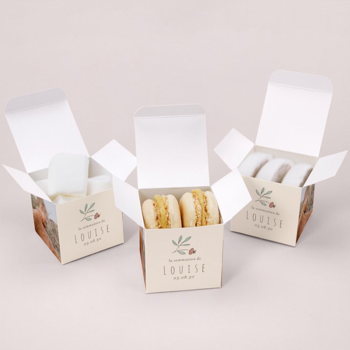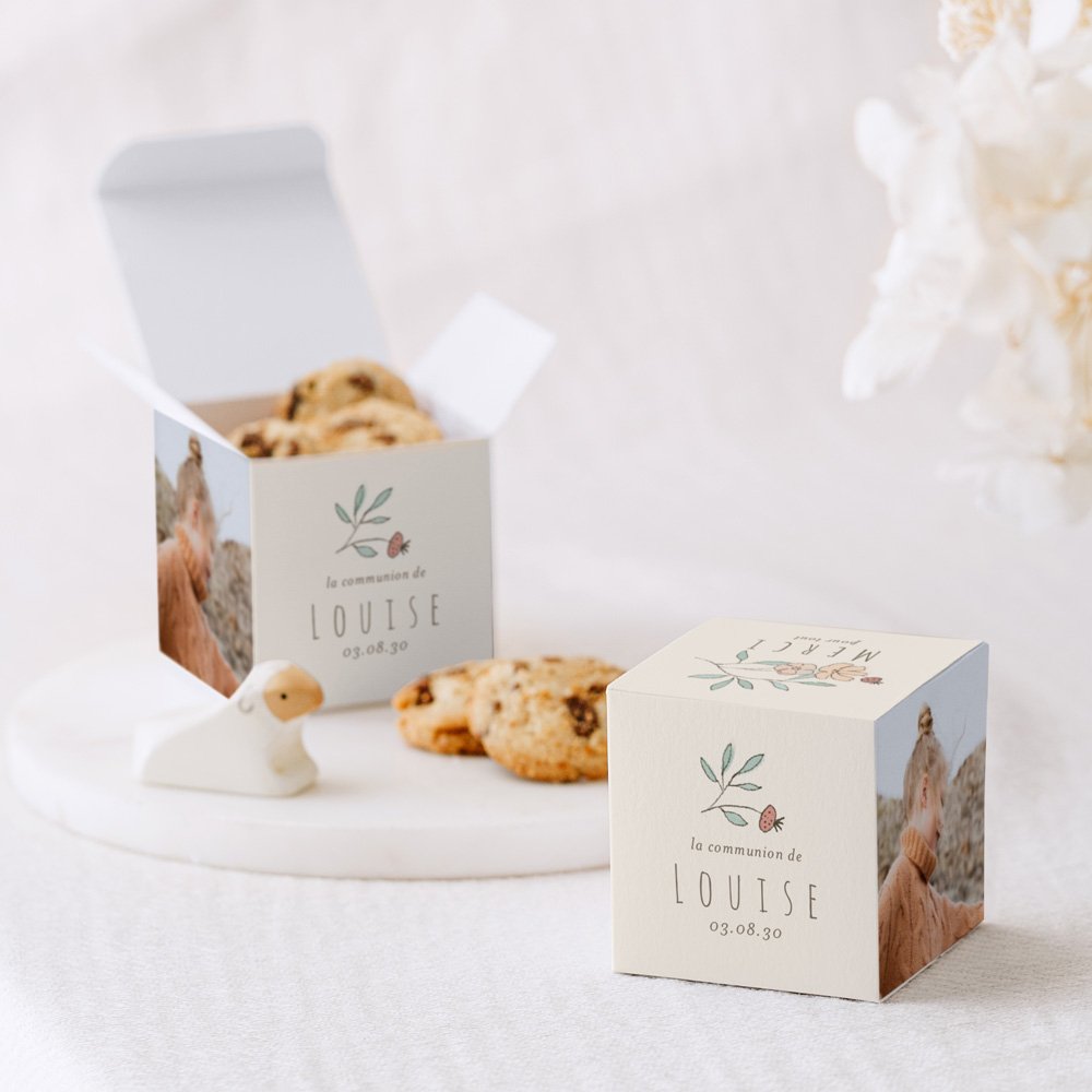 Remerciez vos proches pour leur présence à la communion de votre enfant avec un petit cube surprise.