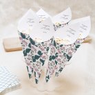 Placés dans une jolie corbeille sur votre table et garnis de pop-corns, de bonbons ou encore de confettis, les cornets à gourmandises apporteront une touche originale à votre décoration de communion.