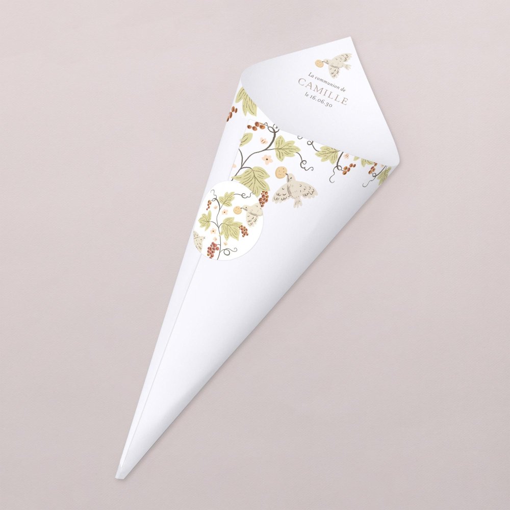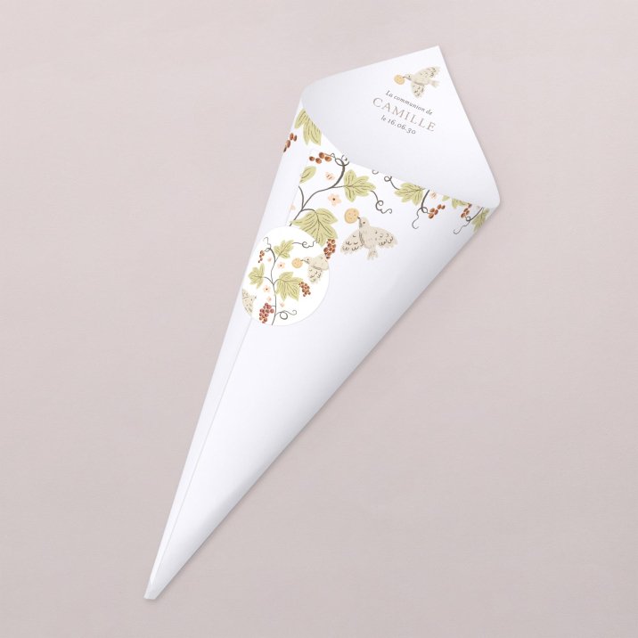 Placés dans une jolie corbeille sur votre table et garnis de pop-corns, de bonbons ou encore de confettis, les cornets à gourmandises apporteront une touche originale à votre décoration de communion.