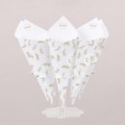 Placés dans une jolie corbeille sur votre table et garnis de pop-corns, de bonbons ou encore de confettis, les cornets à gourmandises apporteront une touche originale à votre décoration de communion.