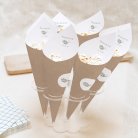 Placés dans une jolie corbeille sur votre table et garnis de pop-corns, de bonbons ou encore de confettis, les cornets à gourmandises apporteront une touche originale à votre décoration de communion.