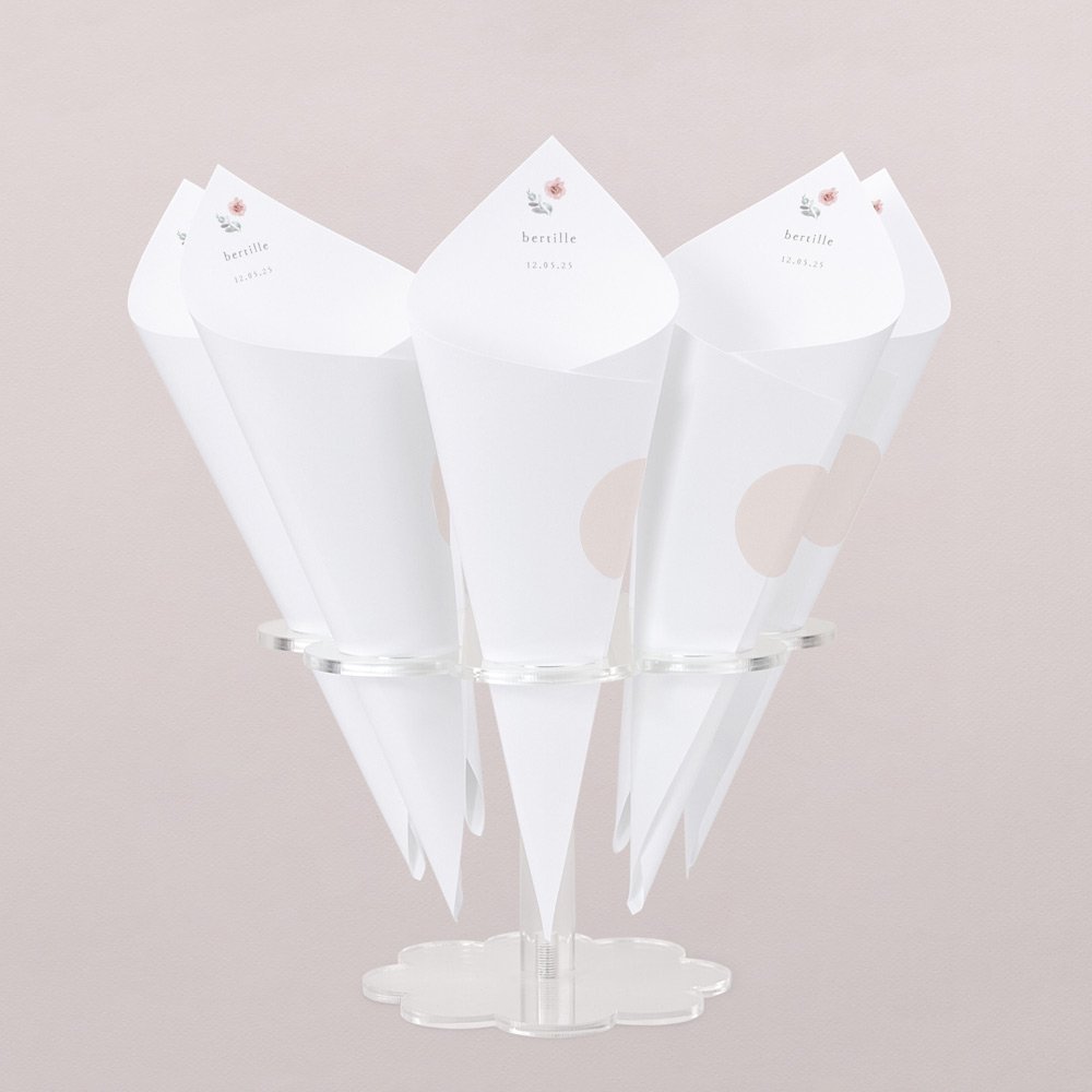 Placés dans une jolie corbeille sur votre table et garnis de pop-corns, de bonbons ou encore de confettis, les cornets à gourmandises apporteront une touche originale à votre décoration de communion.