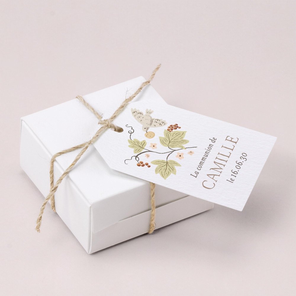 Ces étiquettes sont parfaites pour personnaliser vos boîtes à dragées ou autres petits cadeaux. Déjà perforées, vous pourrez y passer un ruban (au choix et en supplément) et nouer le tout élégamment autour d’un présent ou d’un élément de décoration.