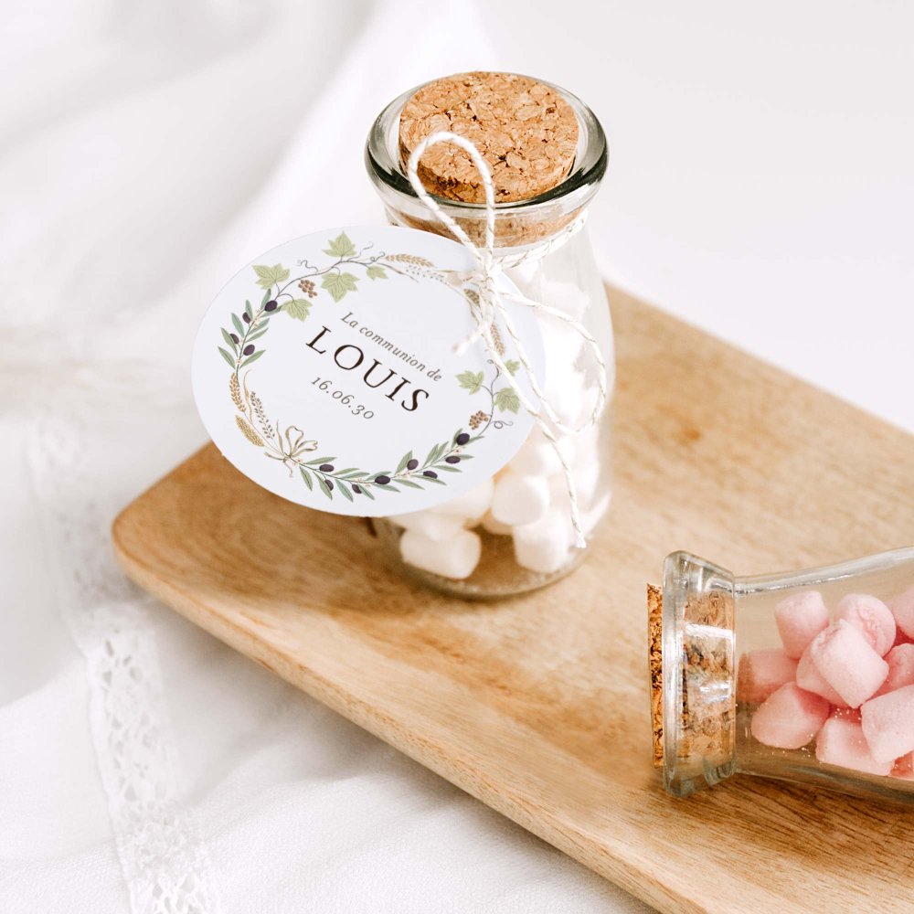 Utilisez ces étiquettes rondes perforées pour peaufiner la décoration de la table de communion, pour personnaliser vos cadeaux invités... puis associez-les avec un joli lien (au choix et en supplément) et le tour est joué !