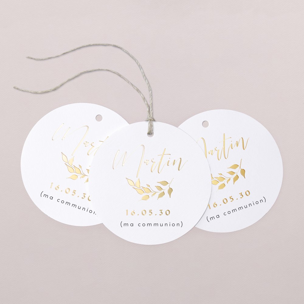 Utilisez ces étiquettes rondes perforées pour peaufiner la décoration de la table de communion, pour personnaliser vos cadeaux invités... puis associez-les avec un joli lien (au choix et en supplément) et le tour est joué !