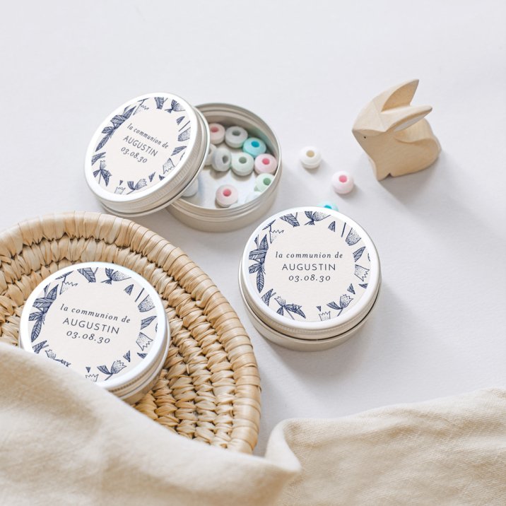 Ce grand sticker est idéal pour sceller de jolis sachets, décorer des boîtes de confiseries, des bougies, des savons ou d'autres petites attentions destinées aux convives présents à la communion de votre enfant. Laissez-vous guider par votre imagination !
