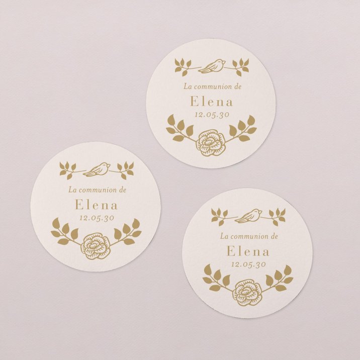 Ce grand sticker est idéal pour sceller de jolis sachets, décorer des boîtes de confiseries, des bougies, des savons ou d'autres petites attentions destinées aux convives présents à la communion de votre enfant. Laissez-vous guider par votre imagination !