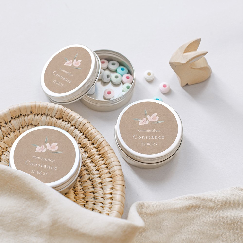Ce grand sticker est idéal pour sceller de jolis sachets, décorer des boîtes de confiseries, des bougies, des savons ou d'autres petites attentions destinées aux convives présents à la communion de votre enfant. Laissez-vous guider par votre imagination !
