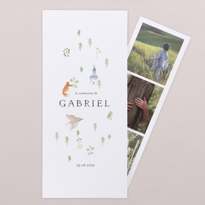 Remerciez famille et amis présents à la communion de votre enfant avec cette carte de remerciement « cadeau ». À l’intérieur de celle-ci, vos proches découvriront un joli photomaton qu’ils pourront afficher sur leur réfrigérateur, utiliser comme marque-page…