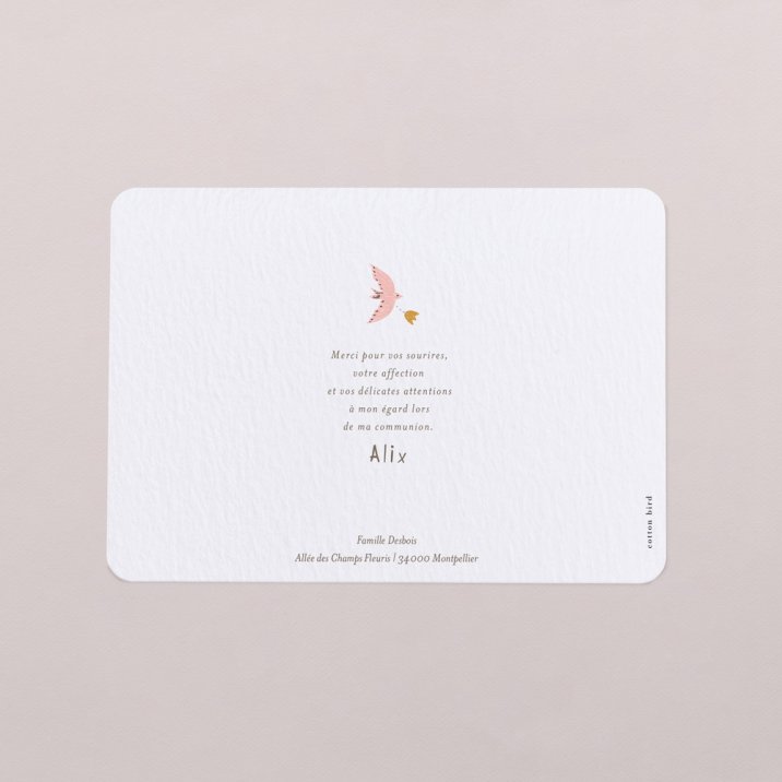 Dites merci aux proches présents à la communion de votre enfant avec une jolie carte de remerciements. Elle se personnalise au recto et au verso avec la photo et le message de votre choix.