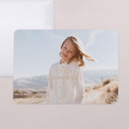 Dites merci aux proches présents à la communion de votre enfant avec une jolie carte de remerciements. Elle se personnalise au recto et au verso avec la photo et le message de votre choix.