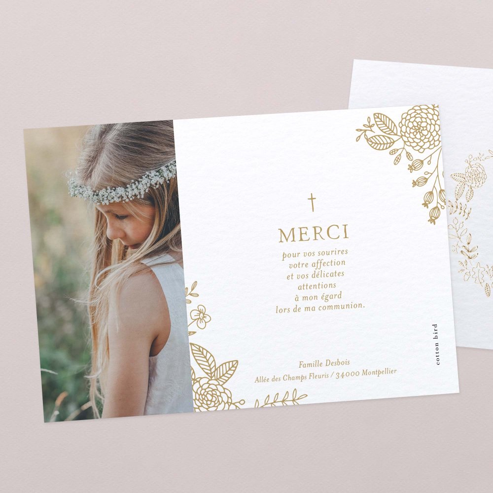 Remerciez les proches présents à la communion de votre enfant grâce à une jolie carte de remerciements. Elle se personnalise au recto et au verso avec votre message et vos photos (selon le modèle).