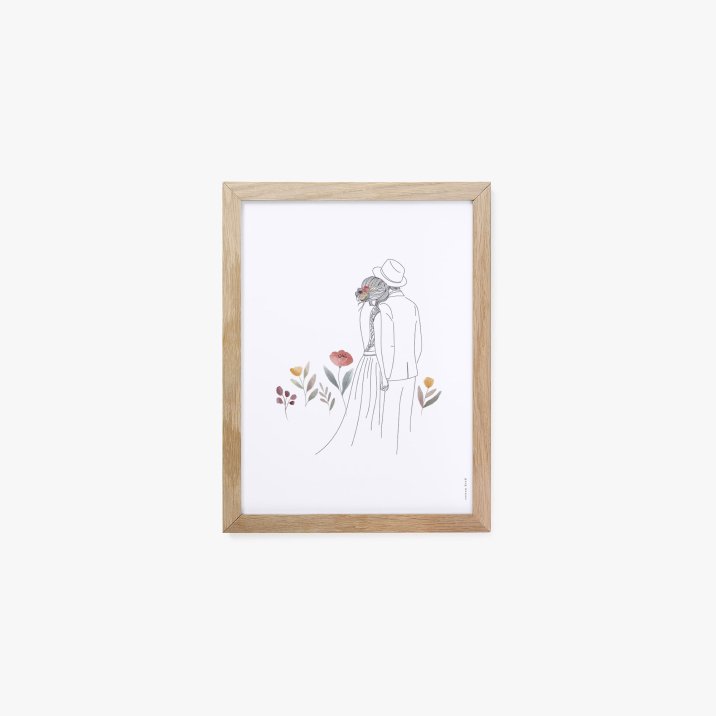 Ambiance bucolique pour l'affiche Balade I et ses amoureux flânant dans les fleurs... Une illustration délicate parfaite pour de jeunes mariés !