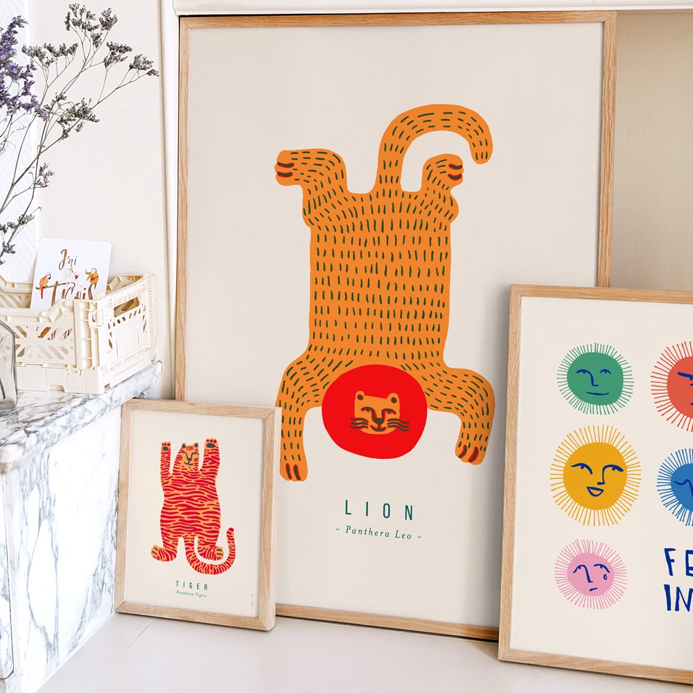 Avec son pelage et sa crinière aux couleurs flamboyantes, l'expressif lion illustré se fait remarquer sur l'affiche King Lion. Joliment esquissé sur ce joyeux tableau coloré, le roi des animaux veillera avec douceur sur votre petit dernier.
