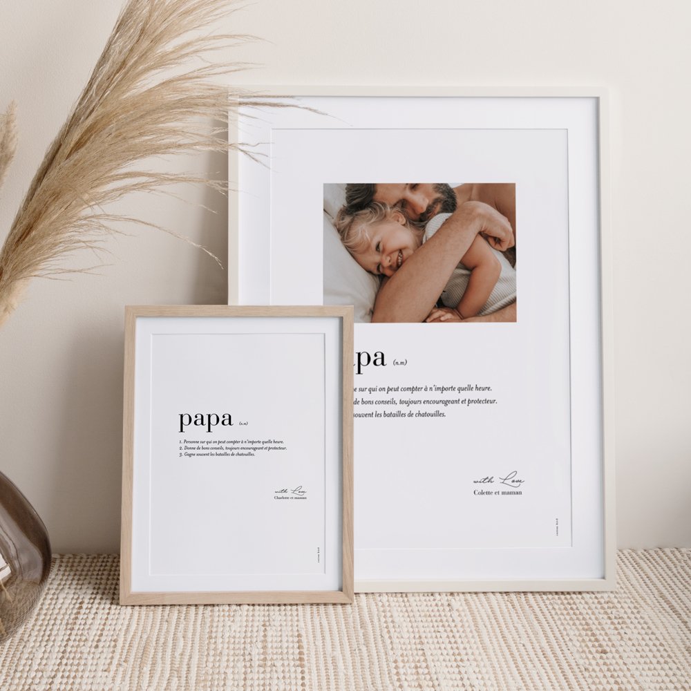 Parce que les papas méritent la plus jolie des affiches... Choisissez ce joli modèle mettant en avant une définition de papa à personnaliser avec votre plus jolie photo.