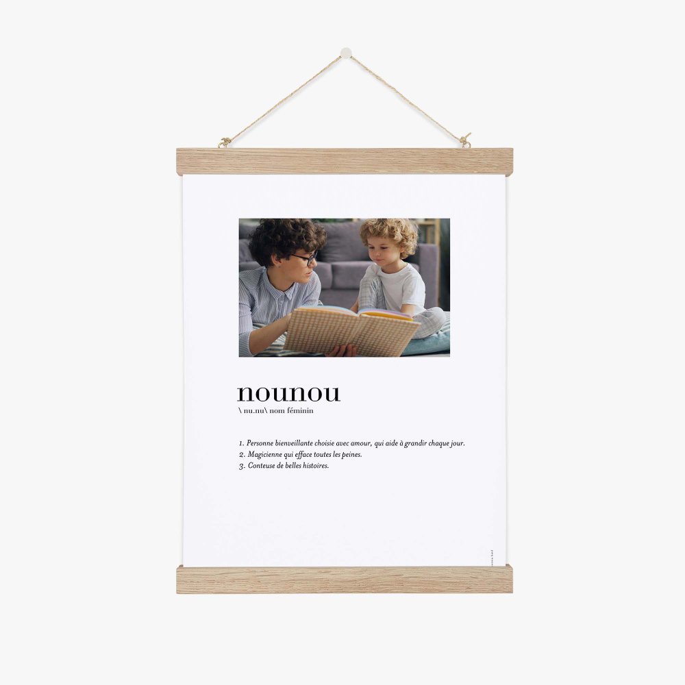 Nous vous proposons de l'afficher dans un joli porte-affiche ou un cadre en bois de chêne (disponibles en option).