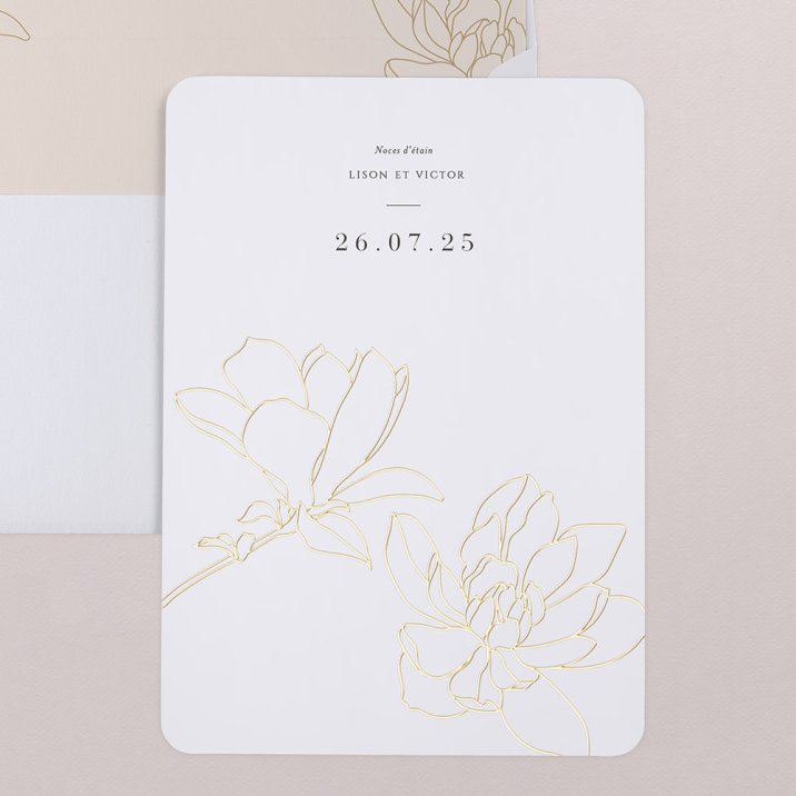 Invitez vos proches à célébrer vos noces d'étain avec cette carte d'invitation anniversaire de mariage au design délicat et épuré.