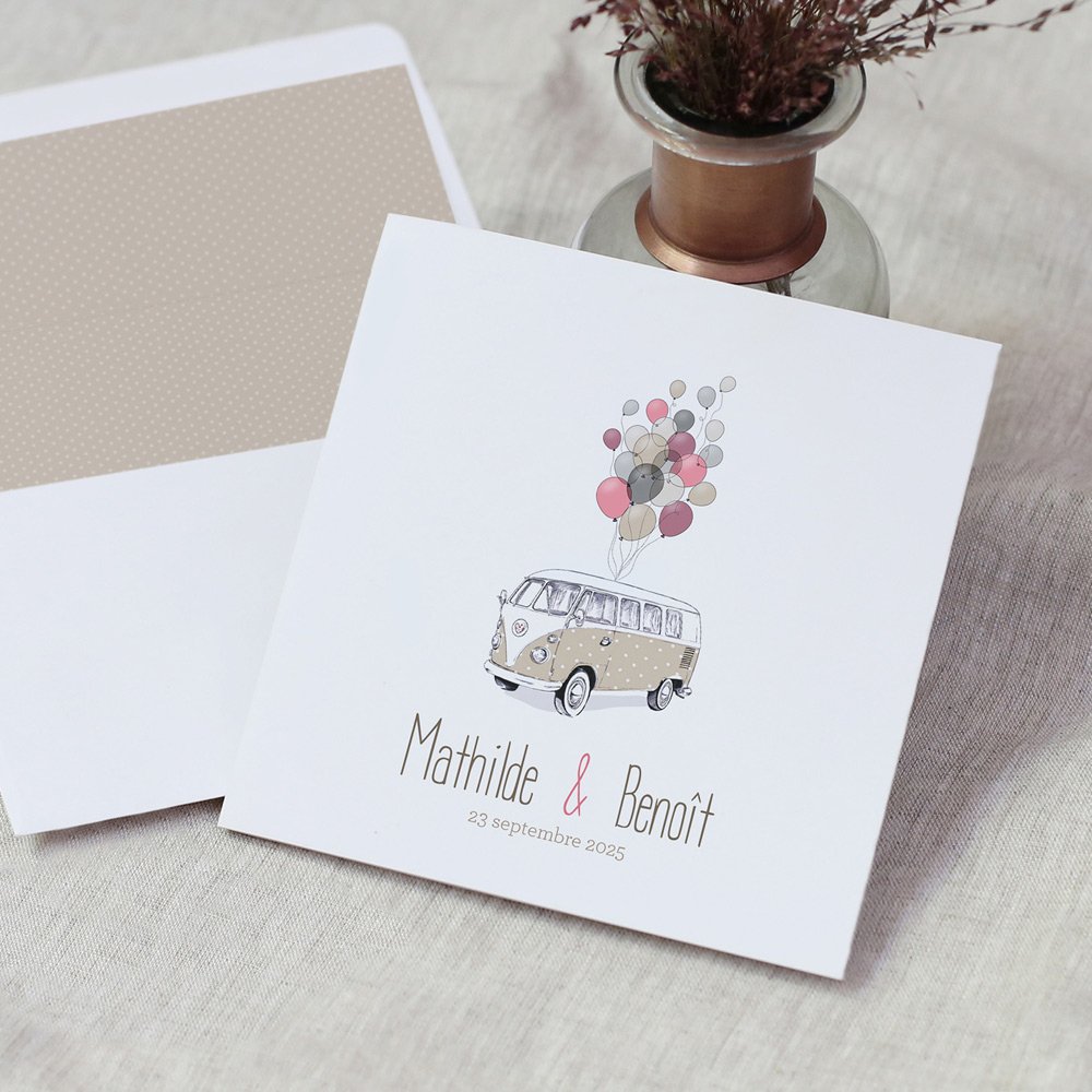 Ce faire-part se présente sous la forme d'une carte double-volet, à personnaliser avec les détails de votre mariage.