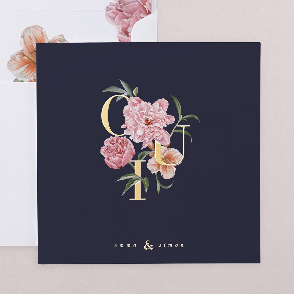 Ce faire-part se présente sous la forme d'une carte double-volet, à personnaliser avec les détails de votre mariage.